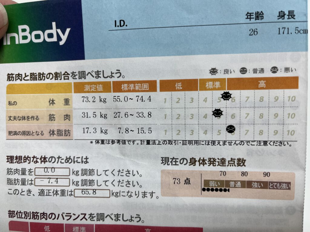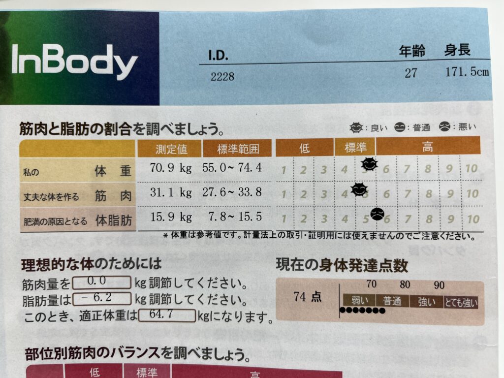 市内のジムにInBodyがあるため、細かくデータを取ってきました。