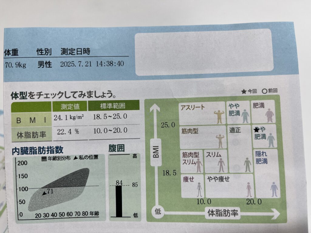 これらの所見を総合的に判断して、体重増加と言うよりも「体脂肪増加」が原因にあると判断しました。