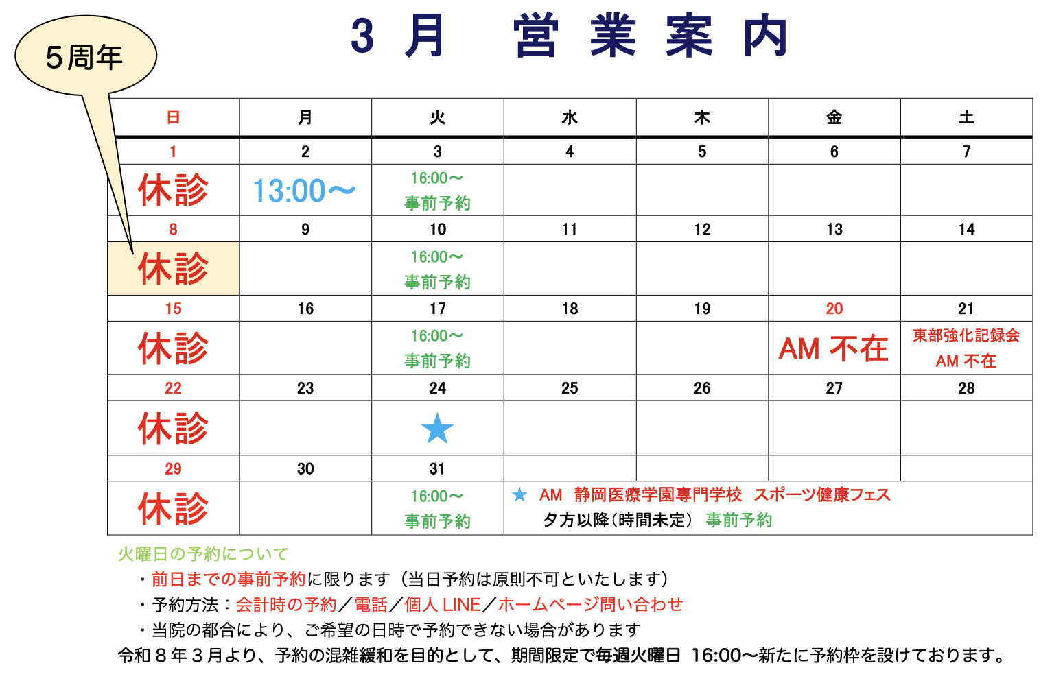 令和8年3月より、予約の混雑緩和を目的として、期間限定で毎週火曜日 16:00~新たに予約枠を設けております。