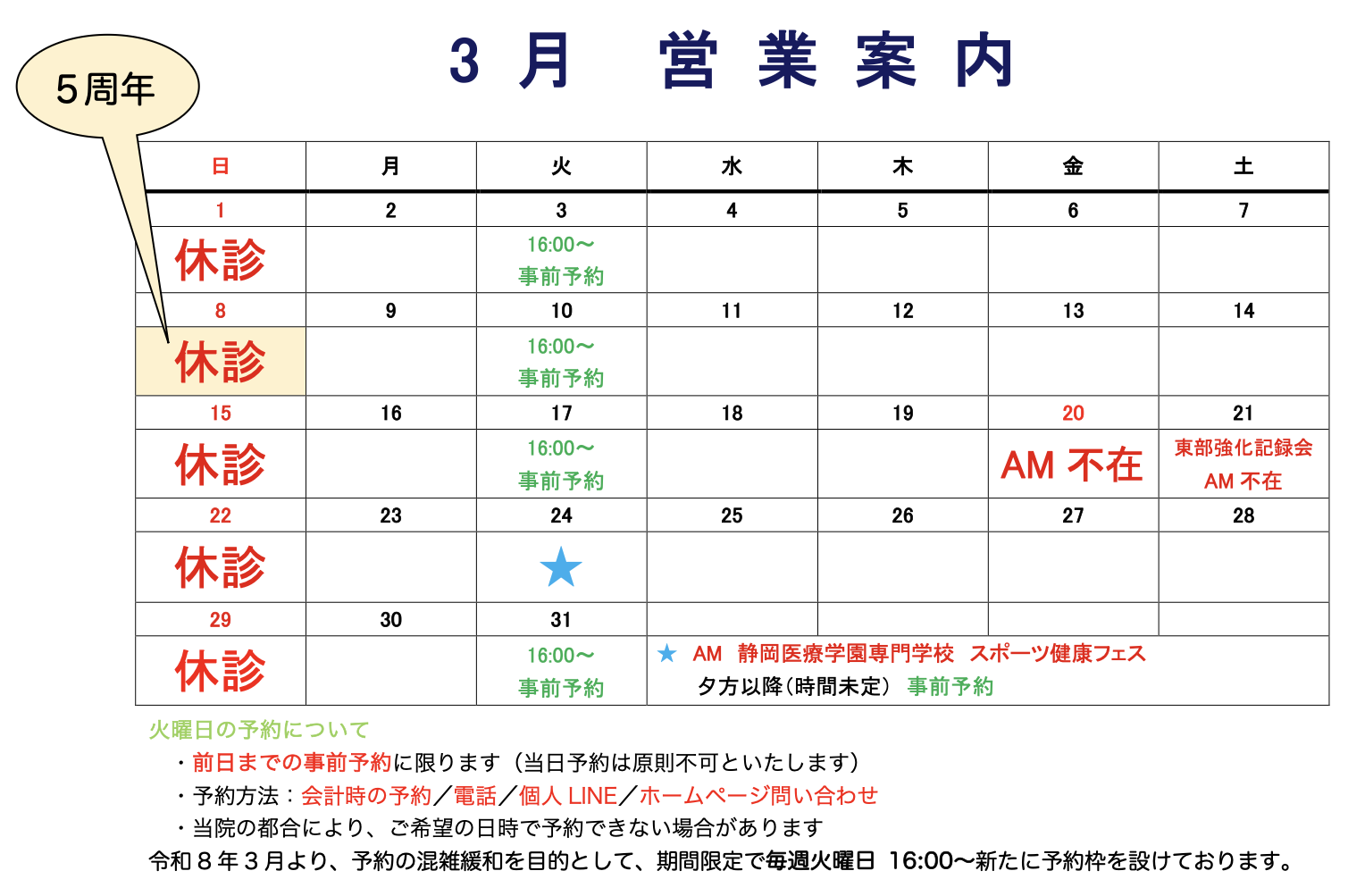 令和8年3月より、予約の混雑緩和を目的として、期間限定で毎週火曜日 16:00~新たに予約枠を設けております。